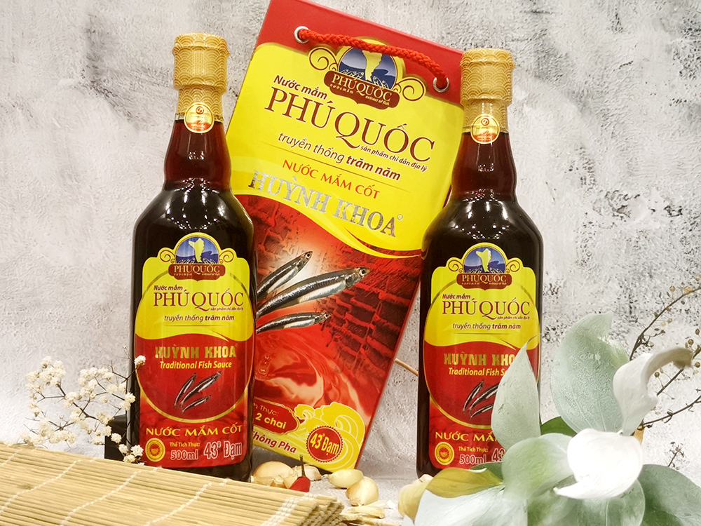 Nước Mắm Truyền Thống Cốt Nhĩ Huỳnh Khoa là một sản phẩm đặc sản của vùng biển đảo ngọc Phú Quốc xinh đẹp Sản phẩm được sản xuất theo phương pháp truyền thống trong dây chuyền khép kín ngoài ra sản phẩm còn đạt được chỉ dẫn địa lý do liên minh 28 nước C