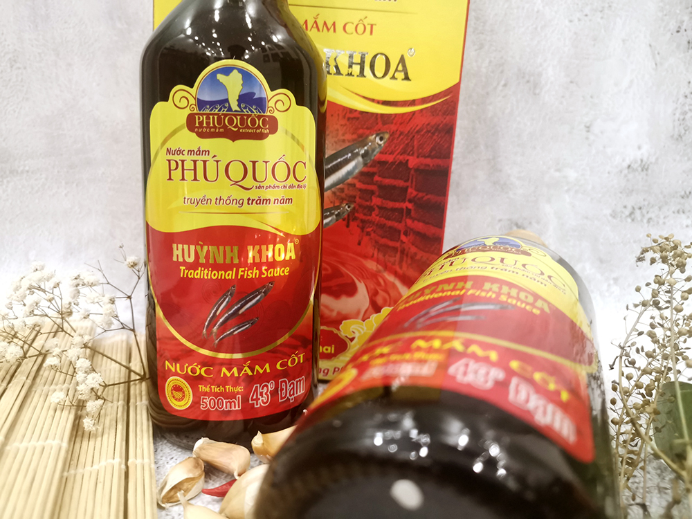 Nước Mắm Truyền Thống Cốt Nhĩ Huỳnh Khoa 43 đạm là một sản phẩm đặc sản của vùng biển đảo ngọc Phú Quốc xinh đẹp Sản phẩm được sản xuất theo phương pháp truyền thống trong dây chuyền khép kín ngoài ra sản phẩm còn đạt được chỉ dẫn địa lý do liên minh 28