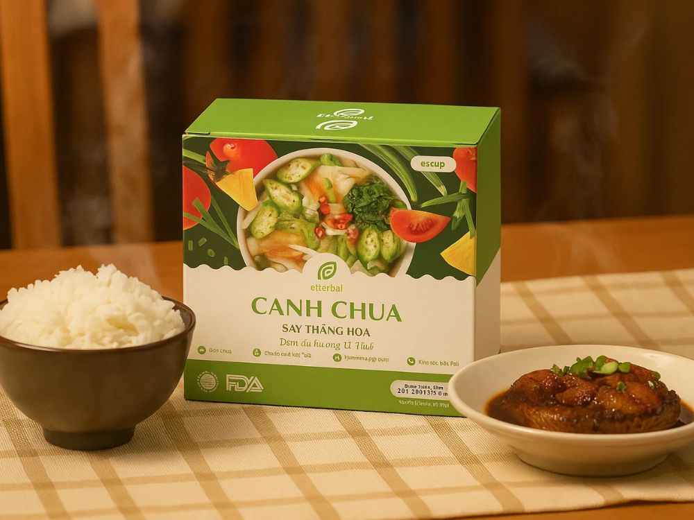 eSoup Canh chua là giải pháp canh ăn liền đột phá, sử dụng công nghệ sấy thăng hoa hiện đại để giữ trọn vẹn hương vị chua thanh, thanh đạm và dưỡng chất tự nhiên của nguyên liệu tươi.