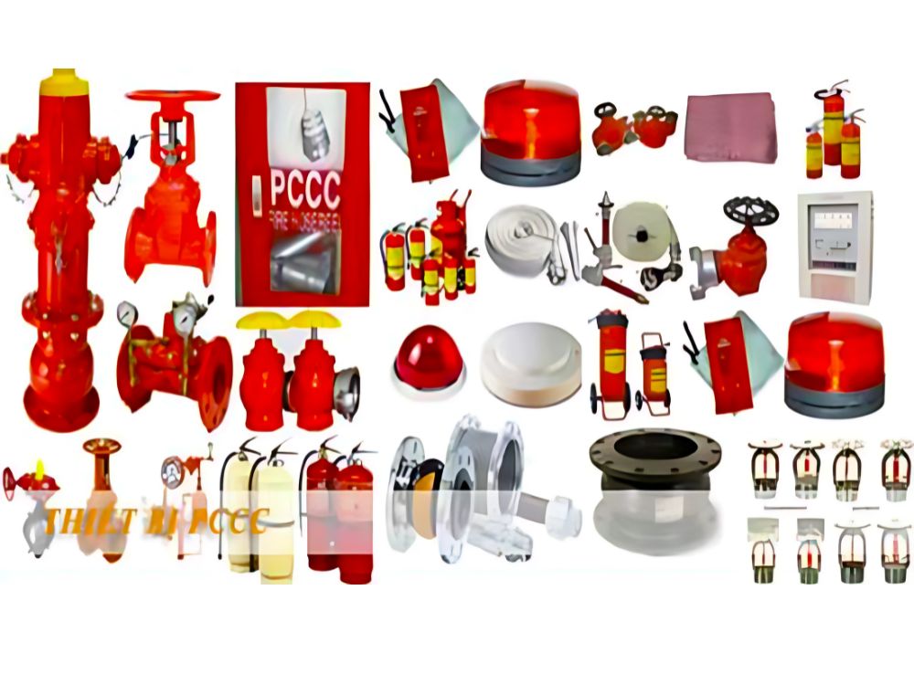 Vật tư, phụ kiện: van, ống, đầu nối, tủ điều khiển, bình chữa cháy cầm tay.