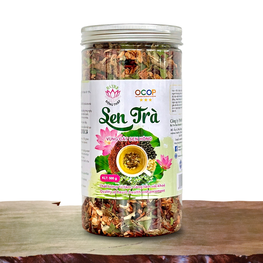 Sen trà là loại trà chế biến từ lá sen và một số nguyên liệu lành tính khác, được sản xuất tại Đồng Tháp. Mang đến nhiều giá trị về sức khoẻ cho người tiêu dùng, với hơn 40% thành phần nguyên liệu là lá sen, người hưởng thức sẽ cảm nhận được 4 cấp độ đặc biệt khi dùng một tách Sen trà Ba Tre.