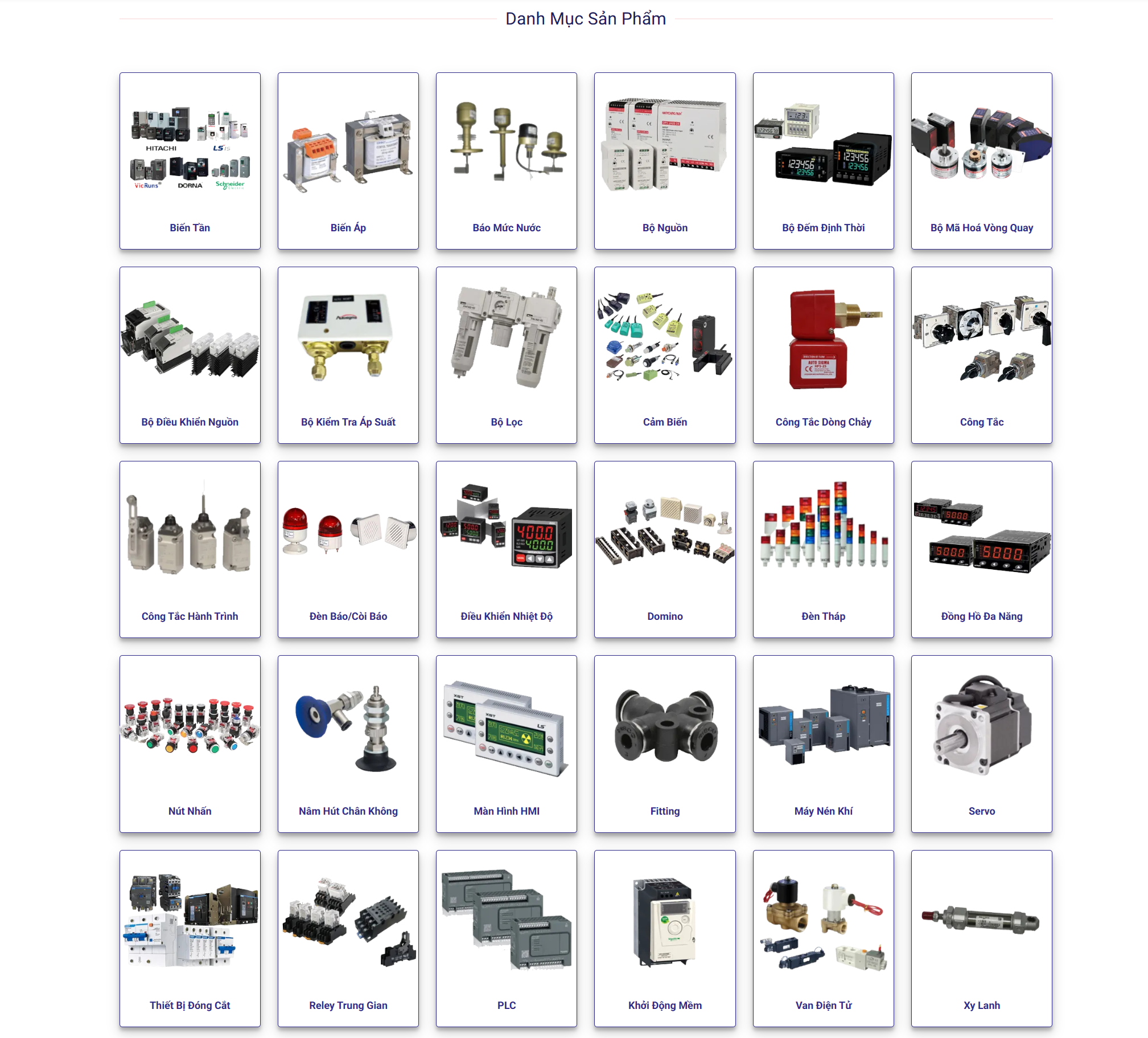 Thiết bị tự động hóa: Biến tần, PLC, servo, HMI, cảm biến, bộ điều khiển nhiệt độ, bộ chuyển đổi tín hiệu.