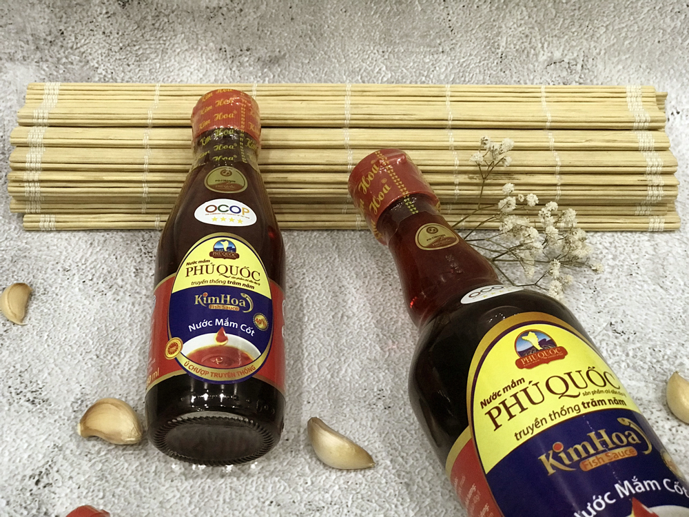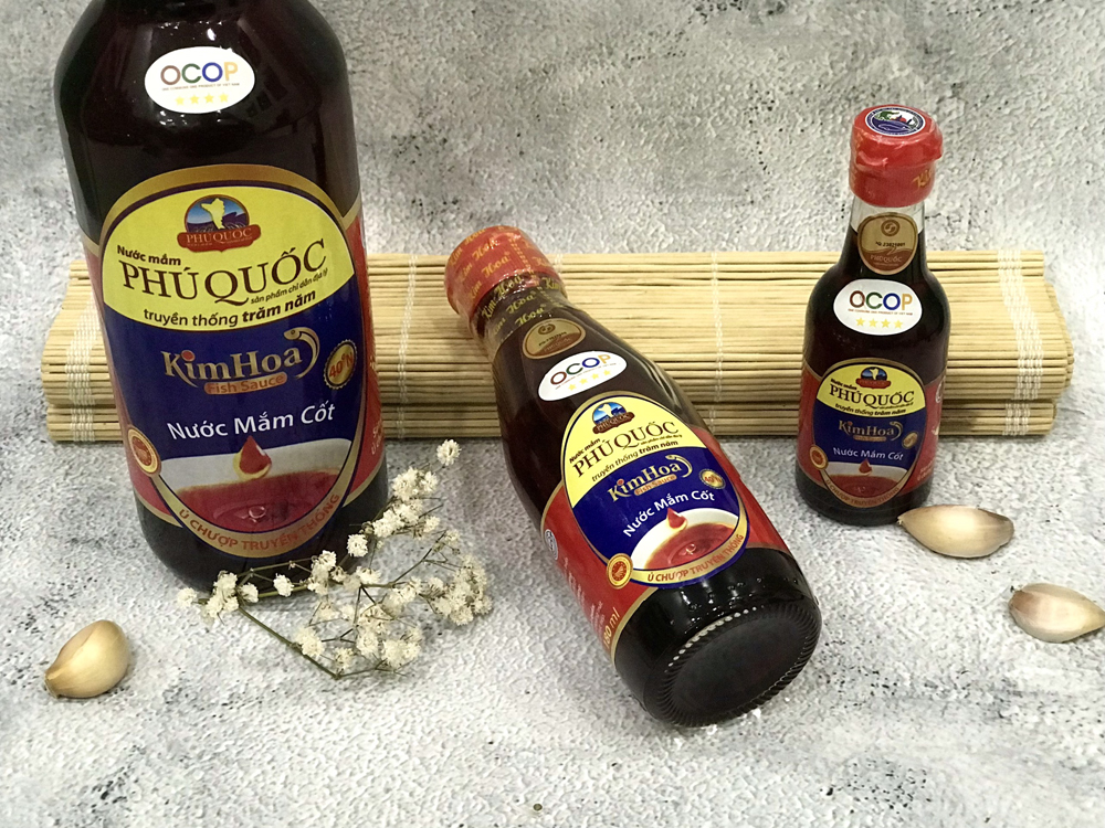 Nước mằm Kim Hoa là nước mắm nguyên chất được làm từ nguồn nguyên liệu các cơm tại vùng biển Phú Quốc, nguyên liệu được tuyển chọn kỹ lưỡng kết hợp với kinh nghiệm sản xuất nước mắm truyền thống từ hàng trăm năm tạo ra một loại nước mắm có mùi thơm đặc trưng; màu cánh gián đậm, trong; vị ngọt, béo của đạm và vị mặn của muối cùng hòa quyện tạo nên hương vị đặc trưng tinh túy của nước mắm Phú Quốc