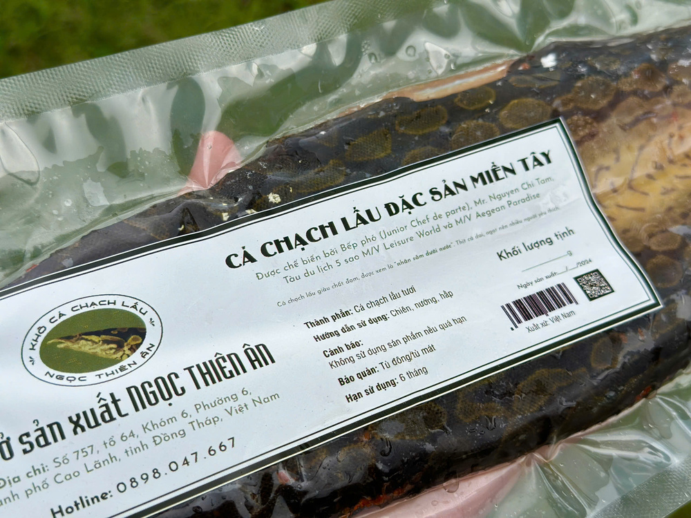 Khô cá chạch lấu 1 nắng 2 sương của cơ sở Ngọc Thiên Ân là đặc sản nổi bật, giữ trọn hương vị tự nhiên và độ tươi ngon. Sản phẩm được sản xuất theo quy trình nghiêm ngặt, đảm bảo vệ sinh và dưỡng chất.